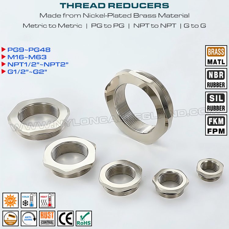 ทำจากทองเหลืองหรือสแตนเลส 304 316 หรือ 316L เป็นอุปกรณ์มาตรฐานใหม่ที่ใช้ลด ขยาย หรือปรับขนาดเกลียว ออกแบบมาให้มีลักษณะกลมหรือหกเหลี่ยม และมีขนาดมาตรฐานให้เลือกหลายขนาด เพิ่มเกลียวที่มีขนาดเท่ากันหรือเล็กกว่าลงในรูระยะห่าง ปรับรูเกลียวให้เหมาะกับขนาดหรือระบบยูนิตที่แตกต่างกัน ช่วยให้เชื่อมต่อระหว่างต่อมกับเกลียวที่เล็กกว่าได้โดยตรงและเชื่อถือได้.